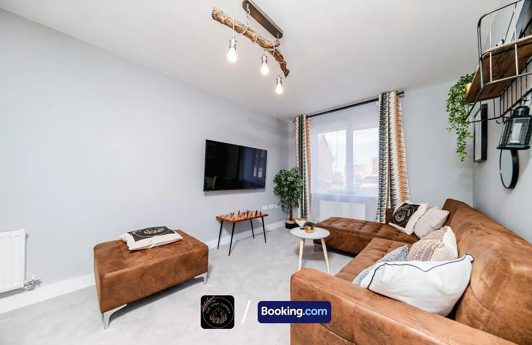3Bedroom House - Free Parking-Mediacity-Motorway-University-Hospital apartment is furnished with a work desk featuring modern facilities like a flat-screen TV with satellite channels. The accommodation holds 2 bedrooms. There are 2 bathrooms available at this property. Additionally, you'll find hair dryers and bath sheets.